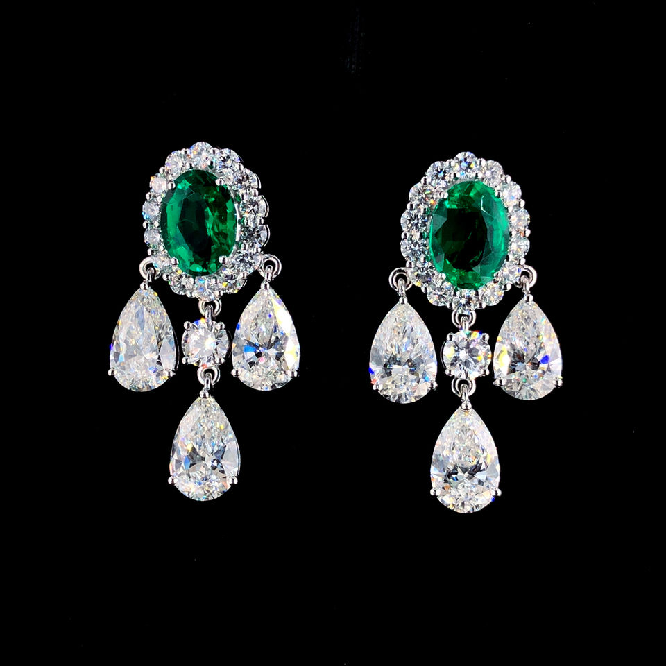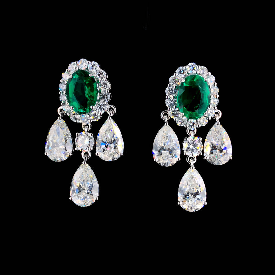 Blossom CS Jewelry Custom Wholesale Water Drop Emerald Earring White Gold Fine Jewelry Women's Earrings
