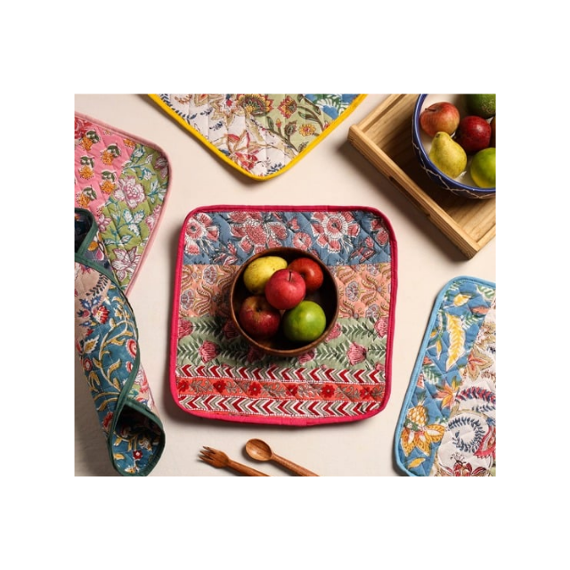 Blossom Floral Thick Woven 100% Cotton Embroidered Heatproof Quilted Kitchen Oven Pad Low Cost OEM ODM Made In India Pot Holder