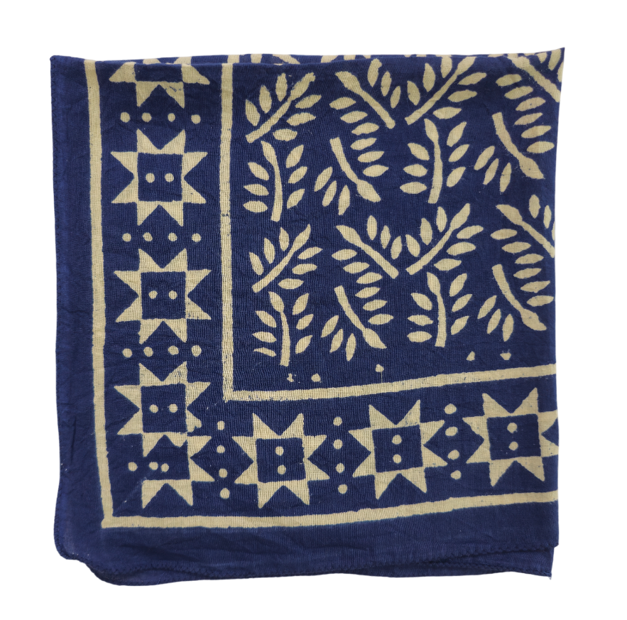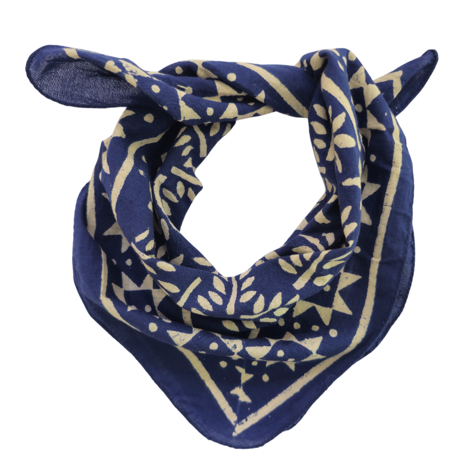 Blue 100% Cotton Bandana Bohemian Style Organic Neck Scarf Hand Block Print Natural Dye Boho Soft Bandana