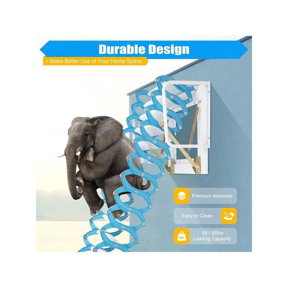 Blue 12-Step Pull Down Alloy Attic Access Ladder Wall-Mounted Folding Stairs for Garages Roofs Basements with Armrests