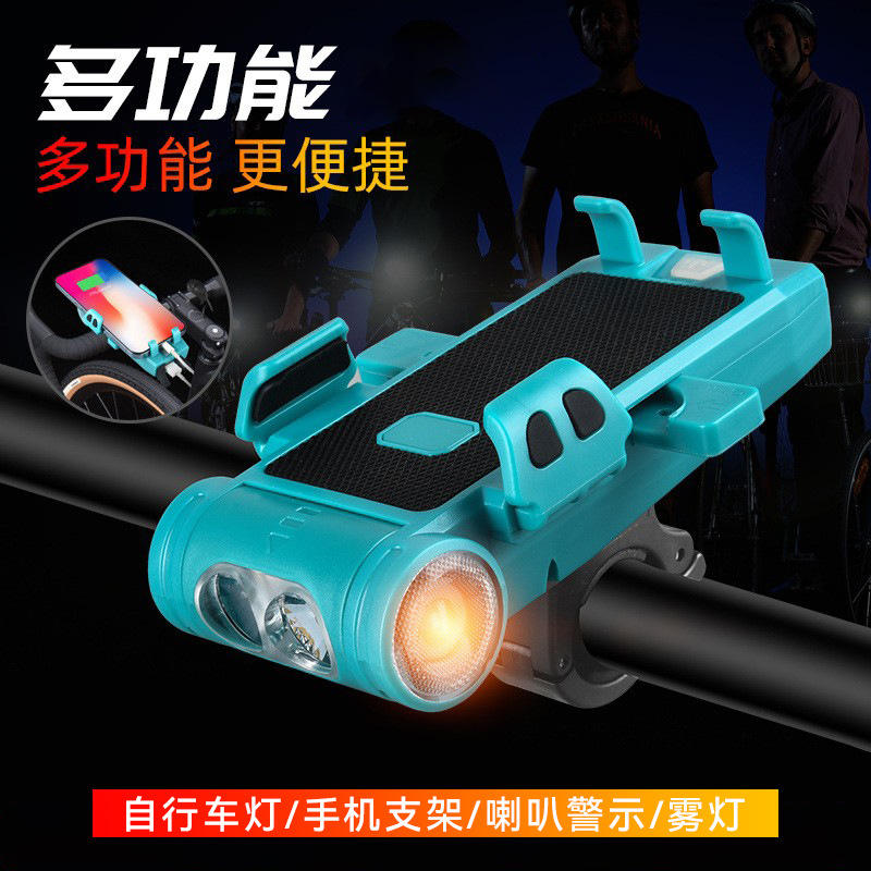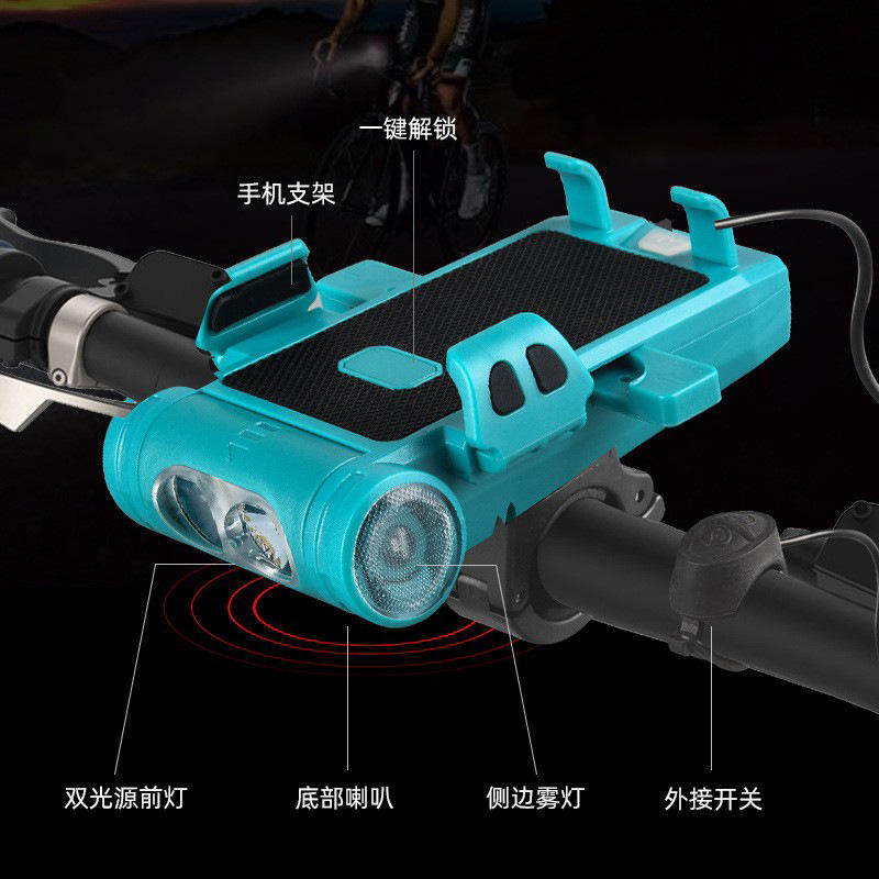 Blue 3500Mh Battery Bicycle Light With Phone Holder Led Headlight Waterproof For Mountain Bike Cycling Navigation