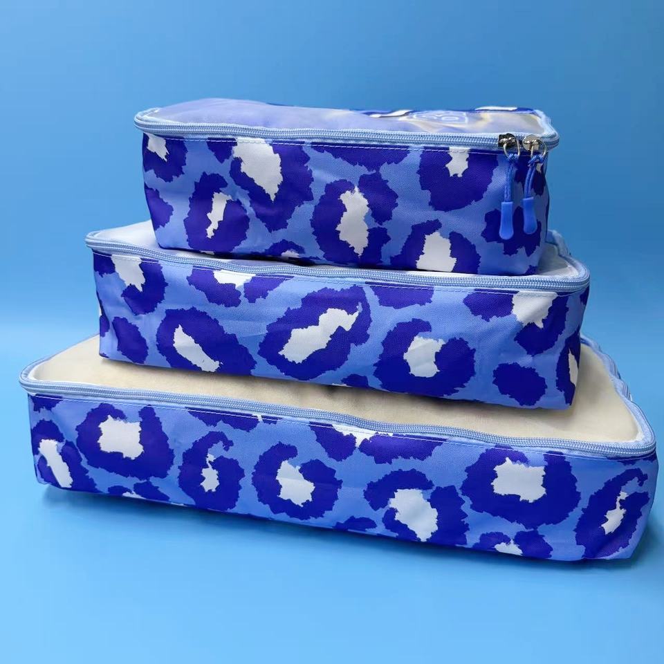 Blue 3PC Nylon Travel Compression Packing Cubes Foldable Storage Bag For Sublimation Print Handbag & Suitcase Luggage Organizer