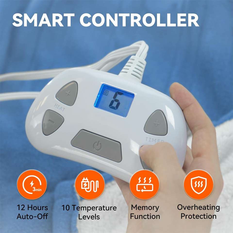 Blue 62"x 84" Sherpa & Polar Fleece Heated Blanket Twin Blanket with 10 Heating Levels and 12 Hours Auto Off