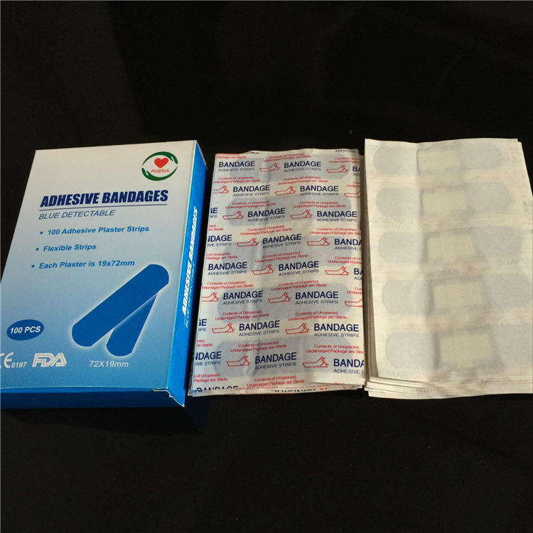 Blue Adhesive Bandages 100 Pcs 72x19mm Waterproof Flexible Plaster Strips For Hotel Chef Use Metal Detectable