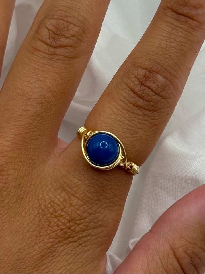 Blue Agate Ring Made With Pure Gold Plated And Blue Agate