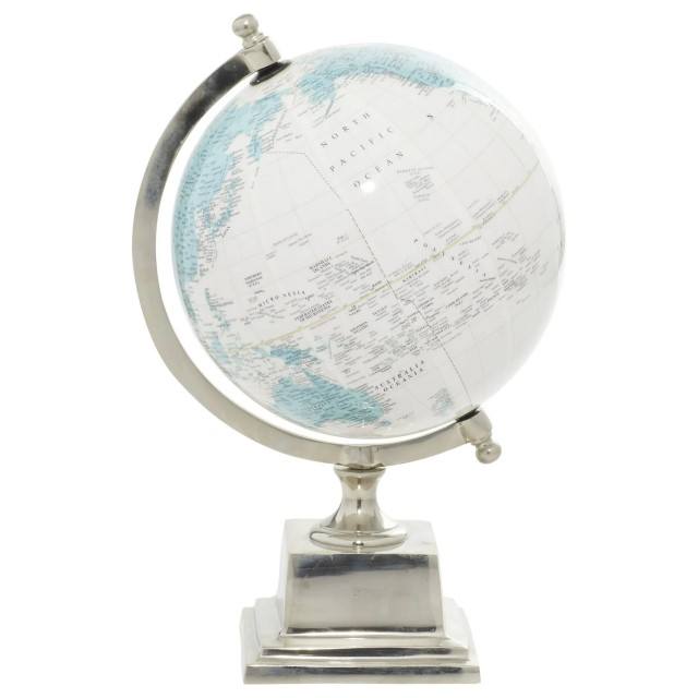 Blue Aluminum Decorative Globe Turquoise and White Aluminum Globe Decorative World Globe with Aluminum Stand Modern