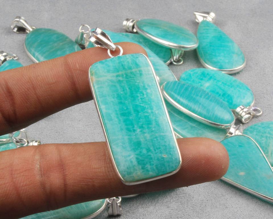 Blue Amazonite Crystal Gemstone Silver Plated Solid Brass Fashion Pendant Chain Necklace Bohemian Vintage Pendants Gifts For Her