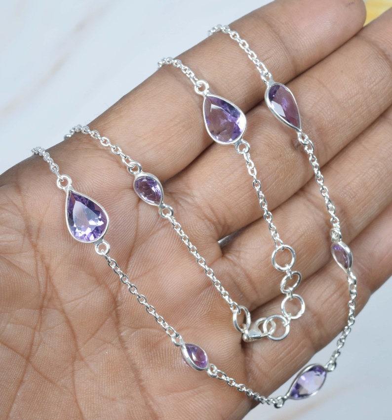 Blue Amethyst 925 Sterling Silver Gemstone Necklace Convertible Bracelet February Birthstone Handmade Fine Pendants Charms
