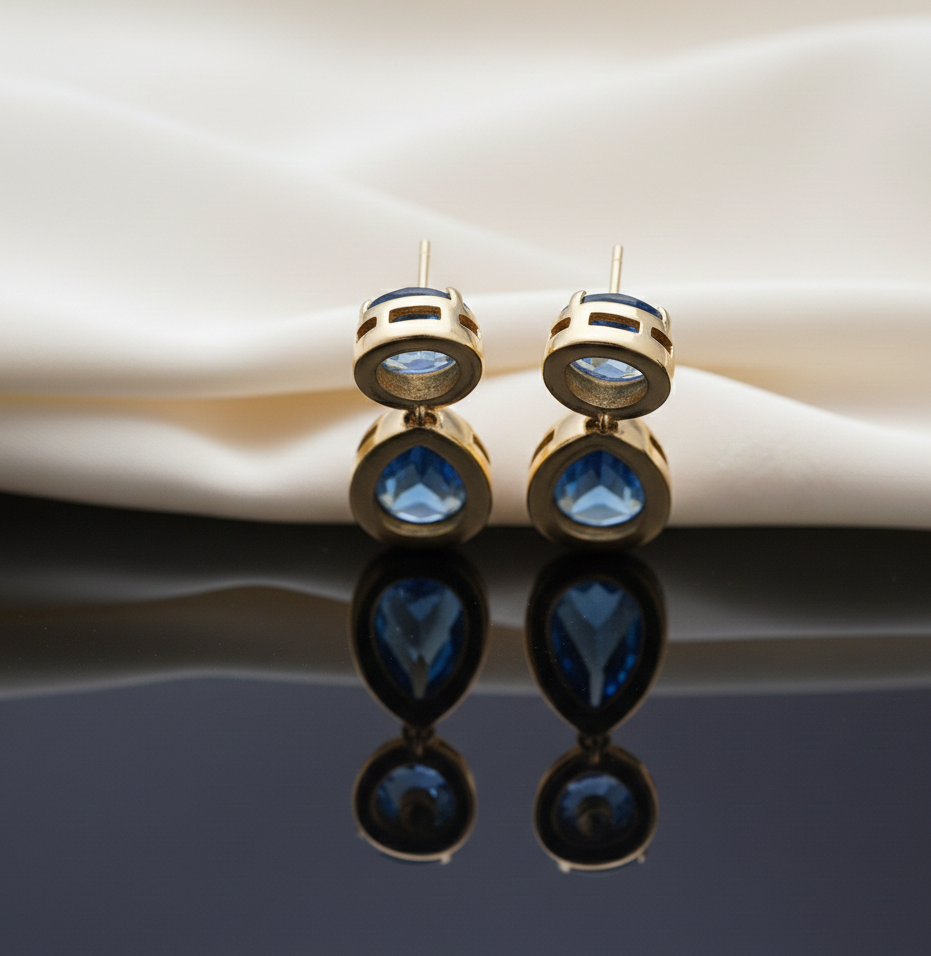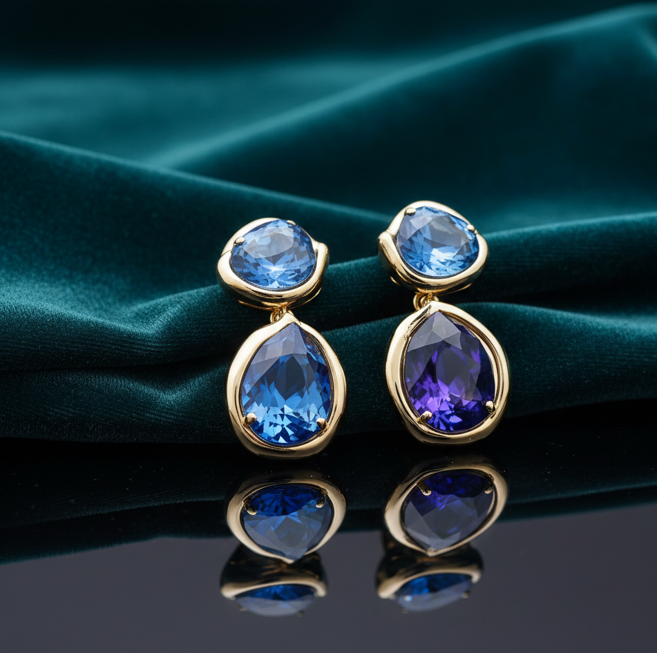 Blue Amethyst Earrings | Round & 9x12mm Pear Gemstone | 925 Sterling Silver 18K Gold Plated | 4 Inch 10g Statement Stud Earrings