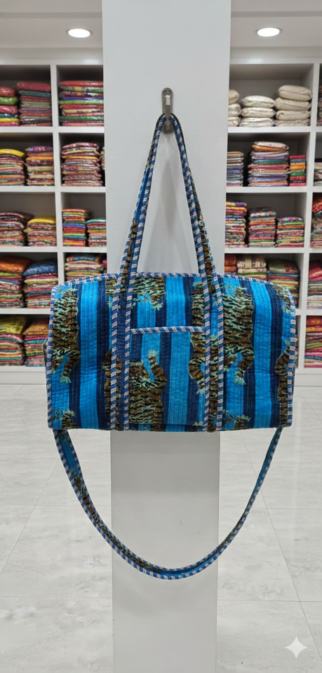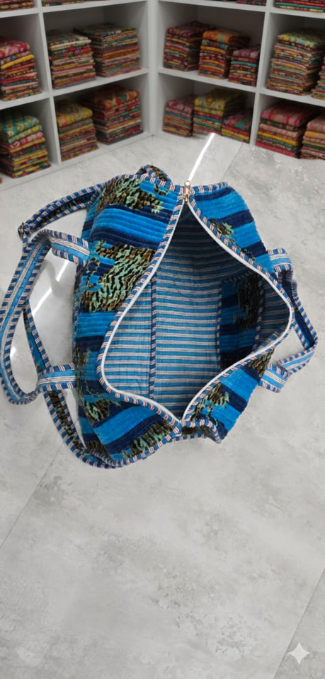 Blue Animal Print Velvet Tactical Duffle Bag Eco-Friendly Durable High Quality Large Capacity Zipper Closure Cotton Weekender