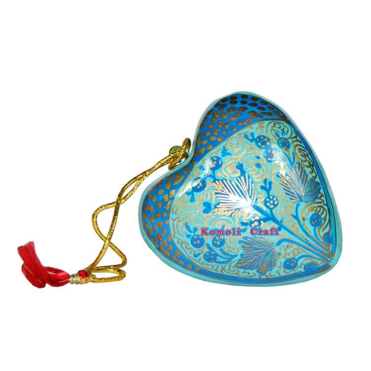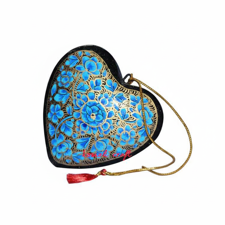 Blue Black Paper Mache Heart Hand Painted Christmas Ornaments Tree Decorations