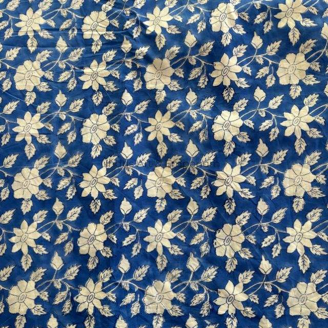 Blue Block Print Cotton Cambric 60X60 Running Fabric Traditional Jaipuri Print Cotton Fabric
