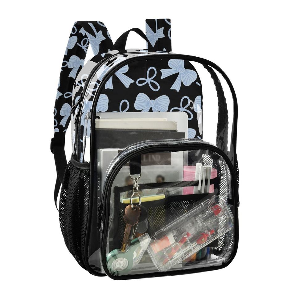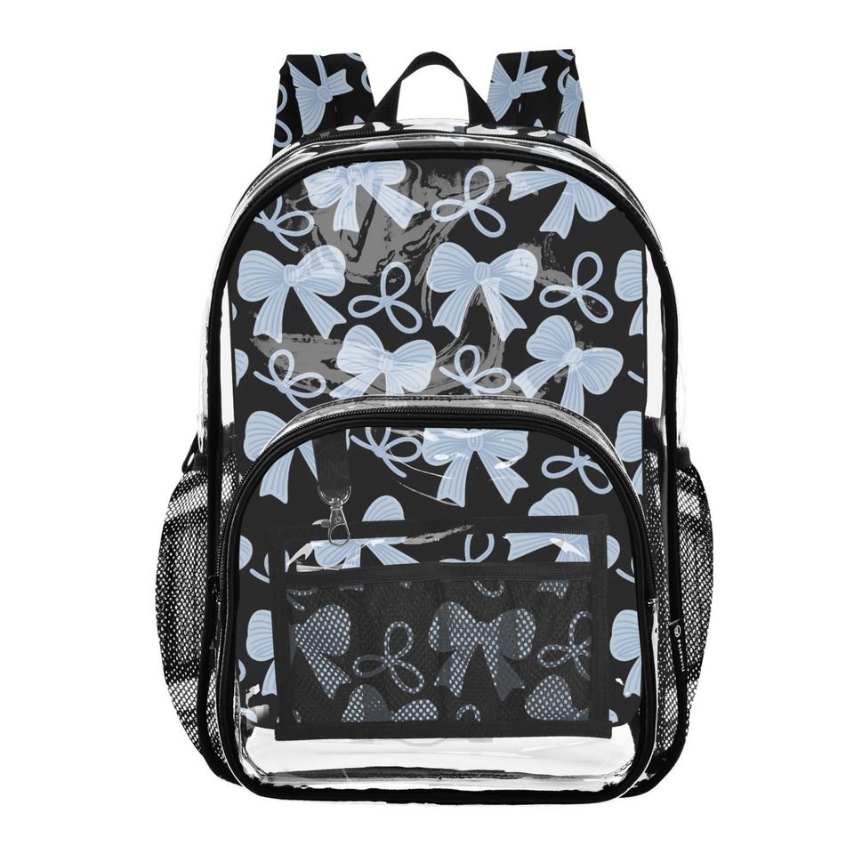 Blue Bow Patterns Customs Waterproof PVC Clear Plastic School Bags Large Clear Backpack Transparent Travel Bag