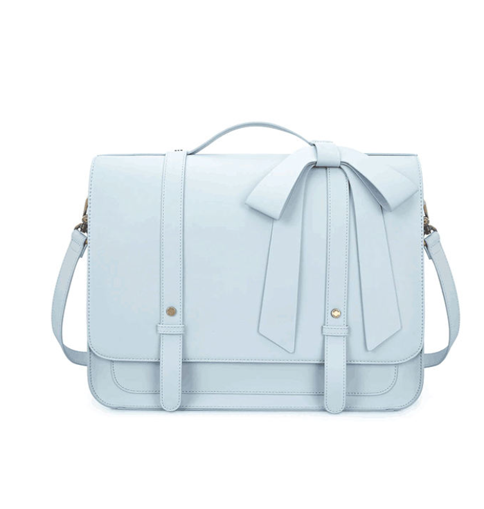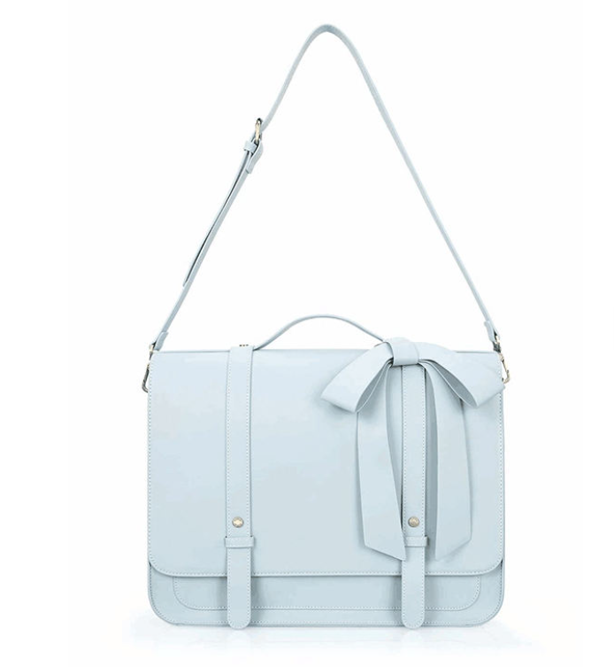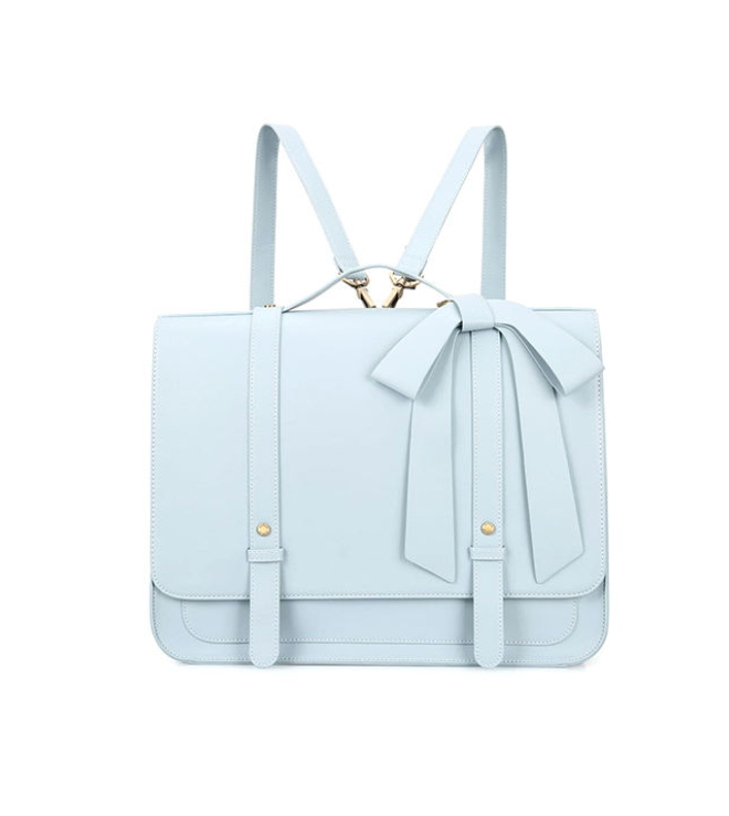 Blue British style women's vegan handbag with bow design, women's shoulder bag, backpack
