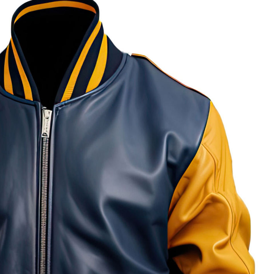 Blue Brown Genuine Sheepskin Custom Baseball Leather Jacket Casual Sporty Smooth Lightweight Custom Varsity Leather Jacket Men