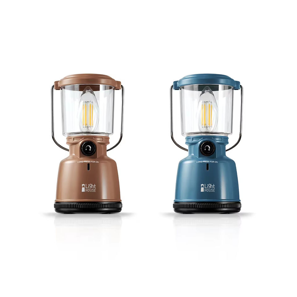 Blue Brown Retro Oil Lamp Shaped LED Camping Lantern 400 Lumens Daylight Dimmable IP65 Waterproof Battery 700h 1-Year Warranty