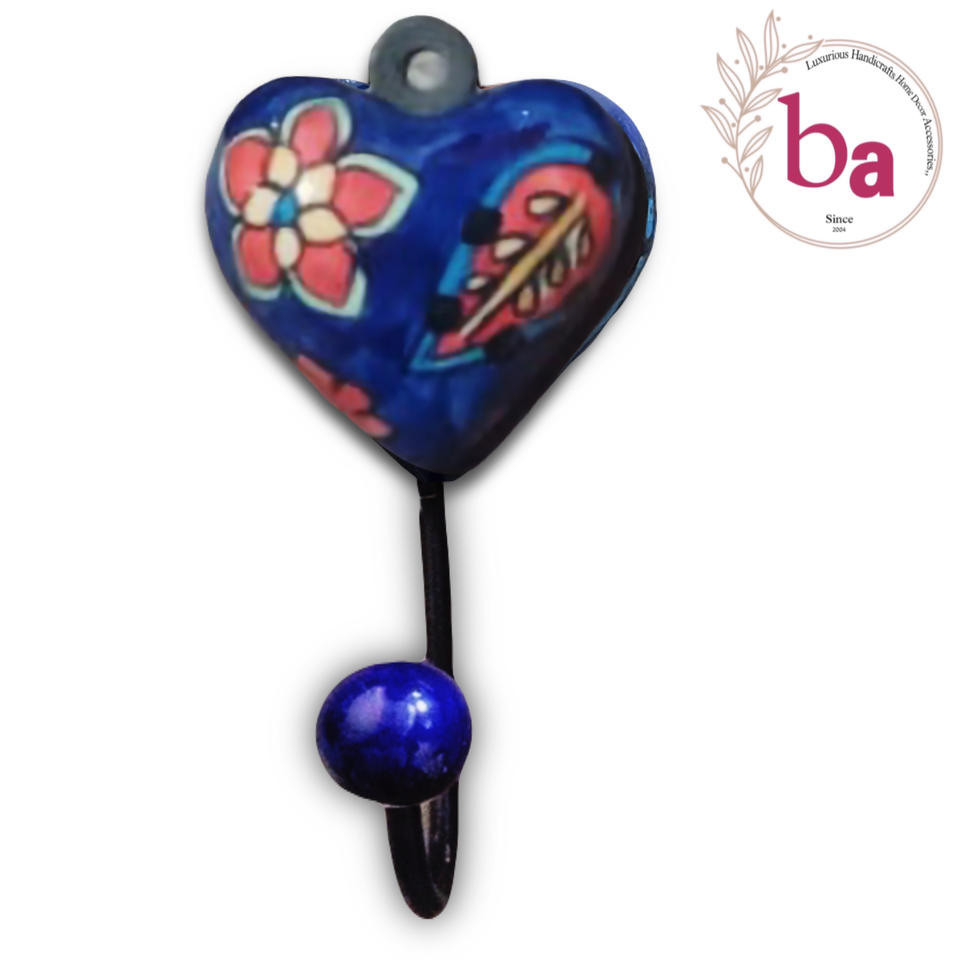 Blue Ceramic Floral Design Coat Hook Keychain Hanger Durable Stylish Home Decor Wall Tile Wall Hook Rails
