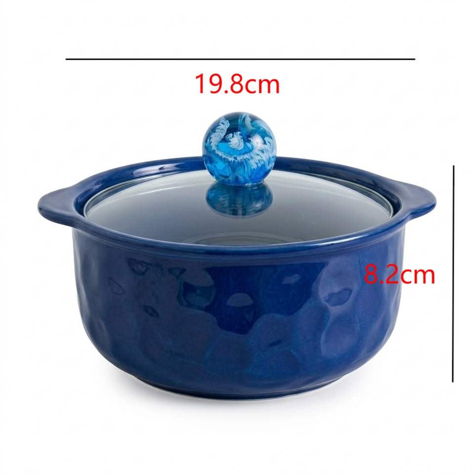 Blue Ceramic Rice Bowl with Lid Decorative Kitchen Serving Bowl with Unique resin Knob Lid for Rice Curry Soup Side Dish Serving