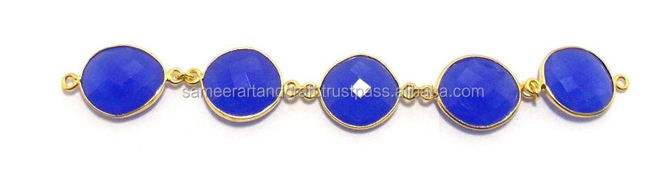 Blue Chalcedony Gemstone Gold Plated Bezel Chain
