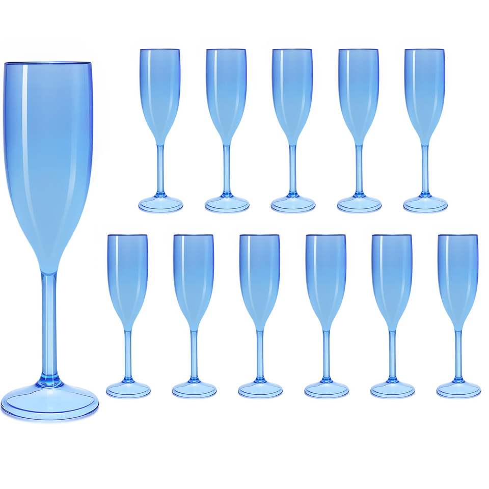 Blue Champagne Flutes Bulk 6oz Acrylic Goblet Wine Glasses Toasting Drinking Unbreakable Plastic High Stem Champagne Cups Goblet