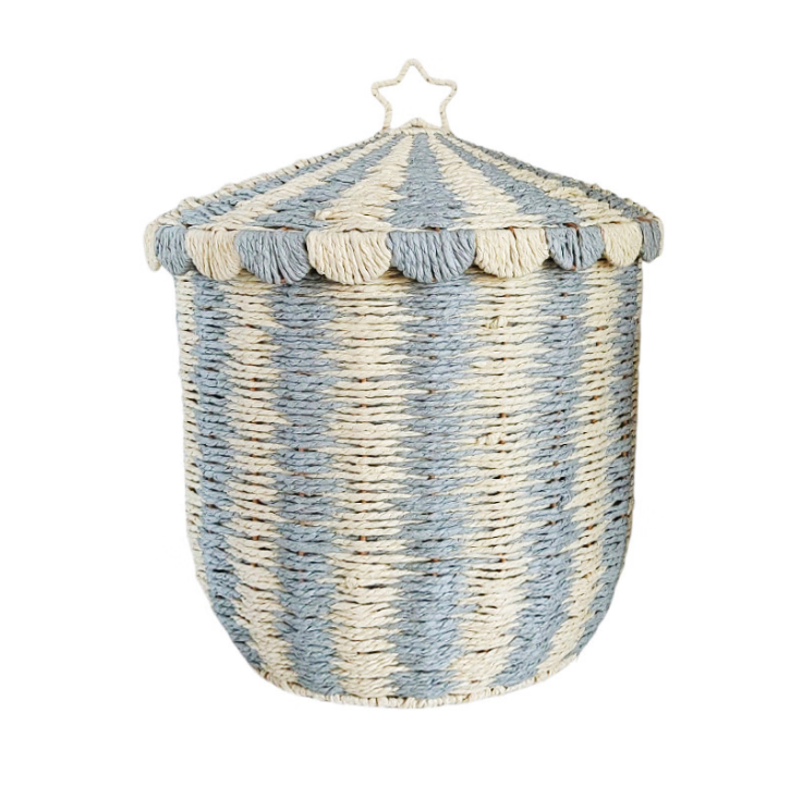Cute Blue Paper Rope Storage Basket with Lid Eco-Friendly Flower Shape Toy & Laundry Hamper for Home Decoration