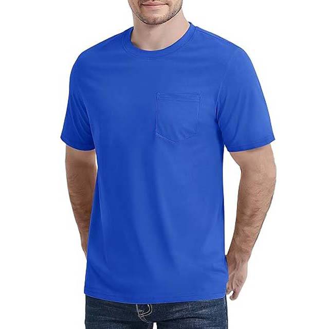 Blue Color Chest Pocket Men's T Shirt Cotton Comfortable Men's Clothing Crewneck Summer Short Sleeve Casual Men T Shirts