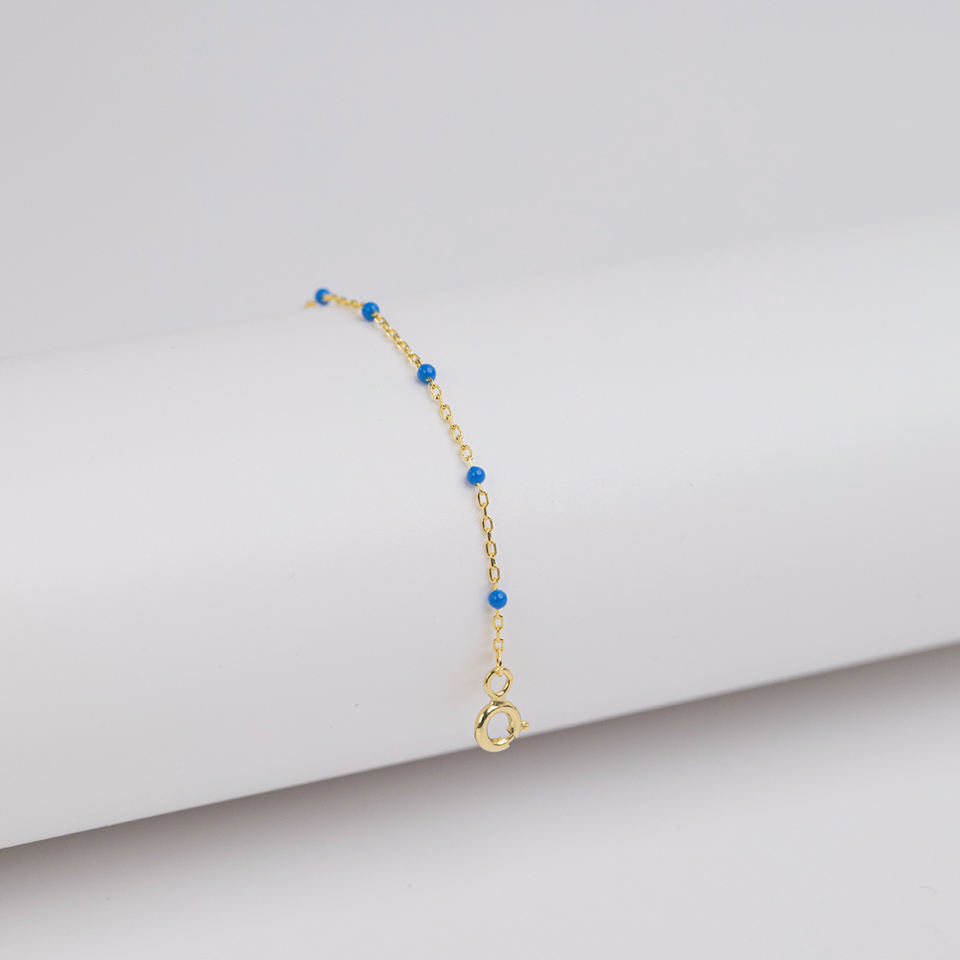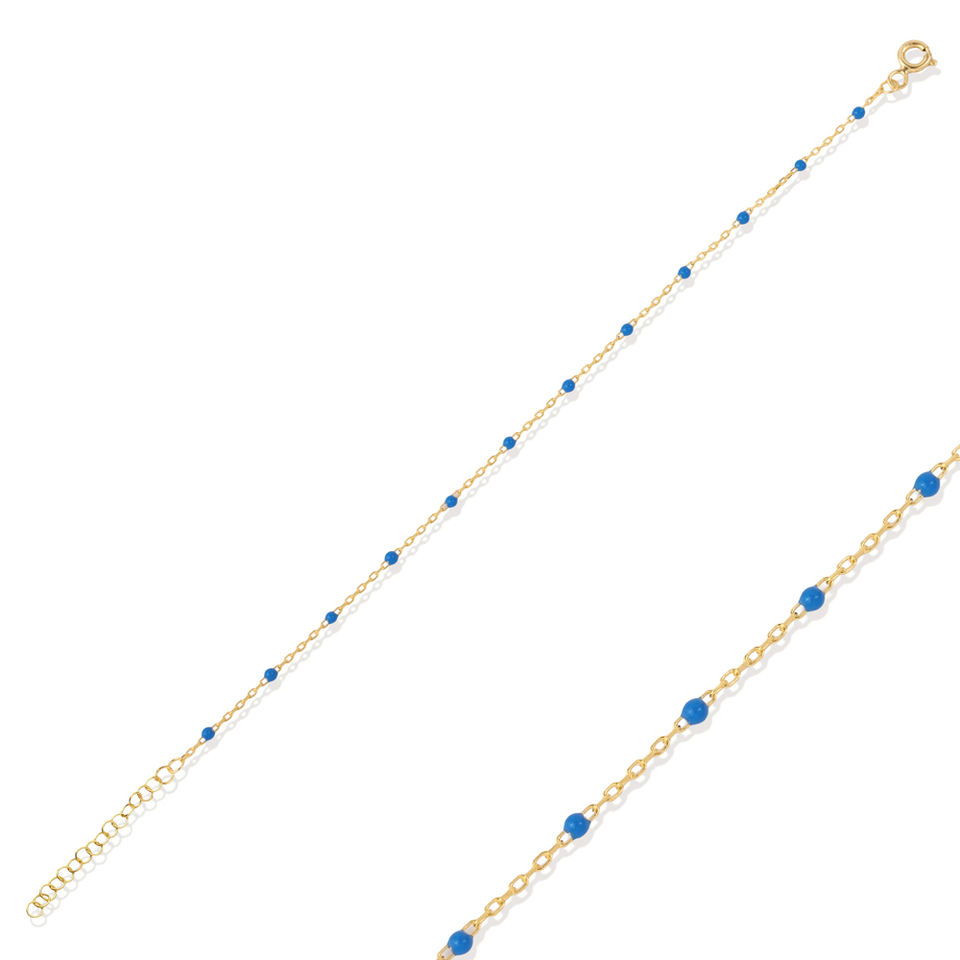 Blue Color Enamel Design Rhodium & Gold Plated Turkish Handcrafted 925 Sterling Silver Chain Bracelet Women's Jewelry