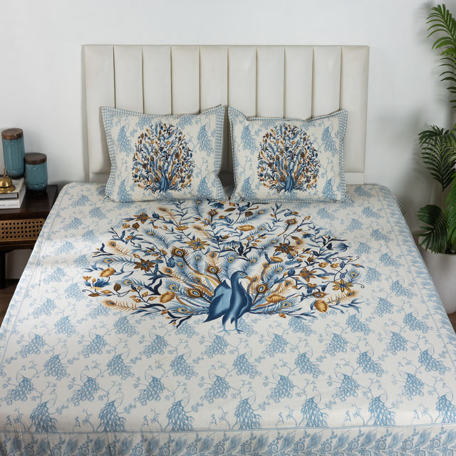 Blue Plant Printed 300tc Eco-Friendly Cotton Duvet Cover Set Double Bed 2 Pillow Covers HEAVENBIRDS Hotel Home Style Wholesale