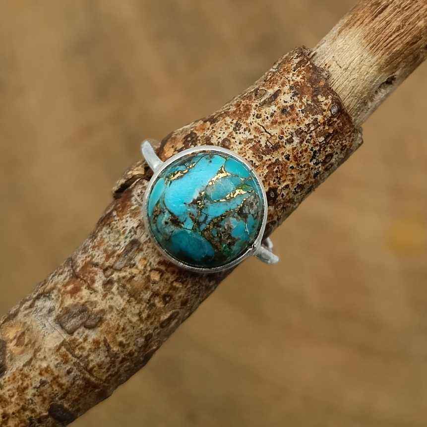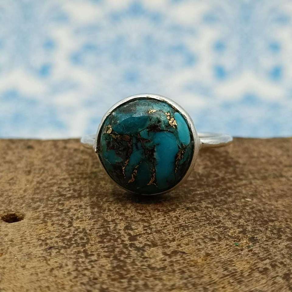 Blue Copper Mohave Turquoise Set 925 Sterling Silver Minimalistic Small Stone Ring Fine Handcrafted Gift for Girls Weddings