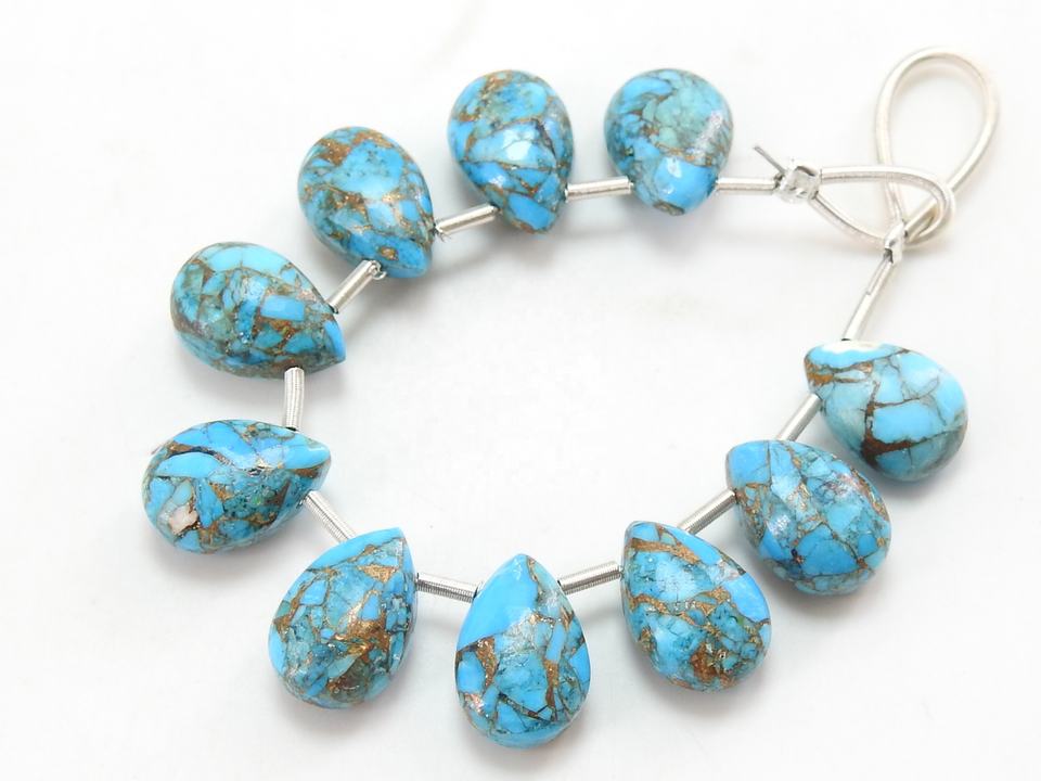 Blue Copper Turquoise Teardrop Bead 10X7MM Smooth Polished Loose Gemstone Jewelry Making With Stone Beaded Material
