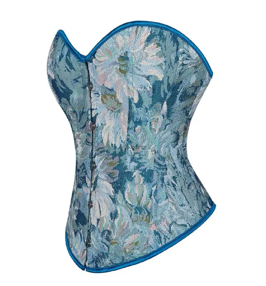 Blue Corset Top Plus Size Women Bustier Overbuys Sexy Lace Up Floral Lingerie Vintage Victorian Fashion Brown Eco arty Top