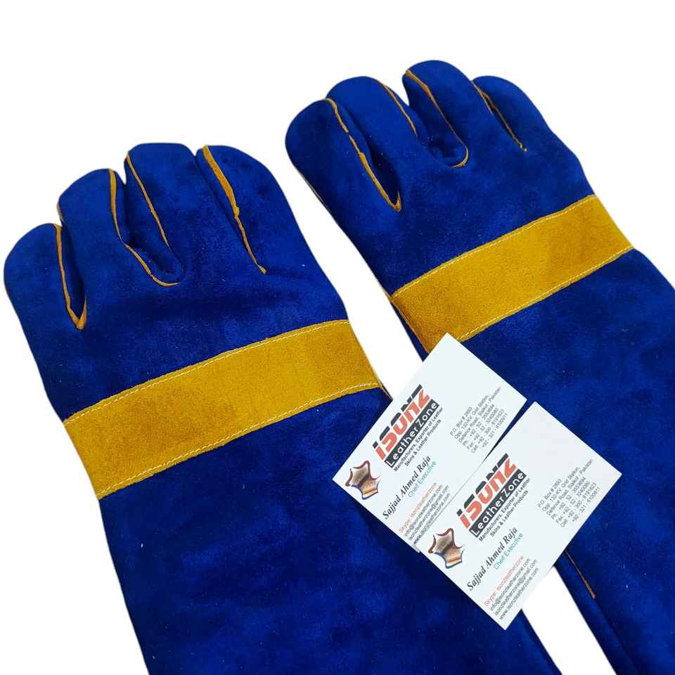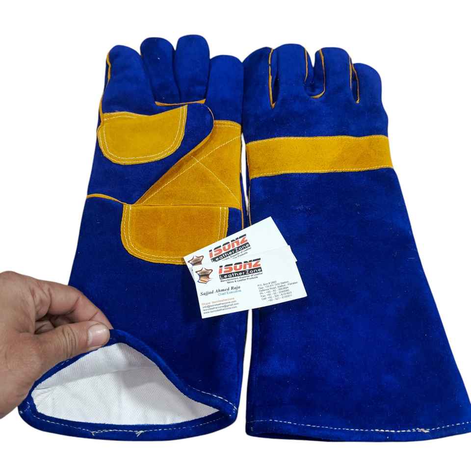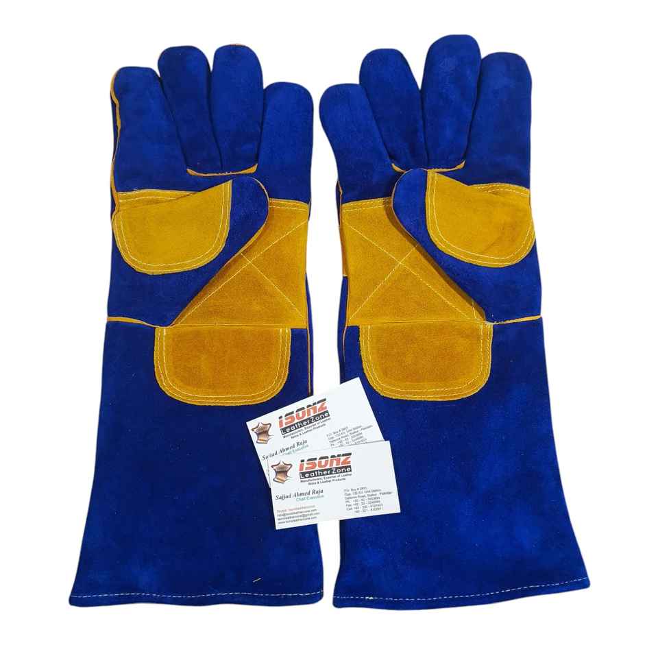 Blue Cow Suede Leather Welding Gloves Heavy Duty Tig MIG Work Gloves with Anti-Heat Anti-Cut Anti-Impact Anti-Slip Durable