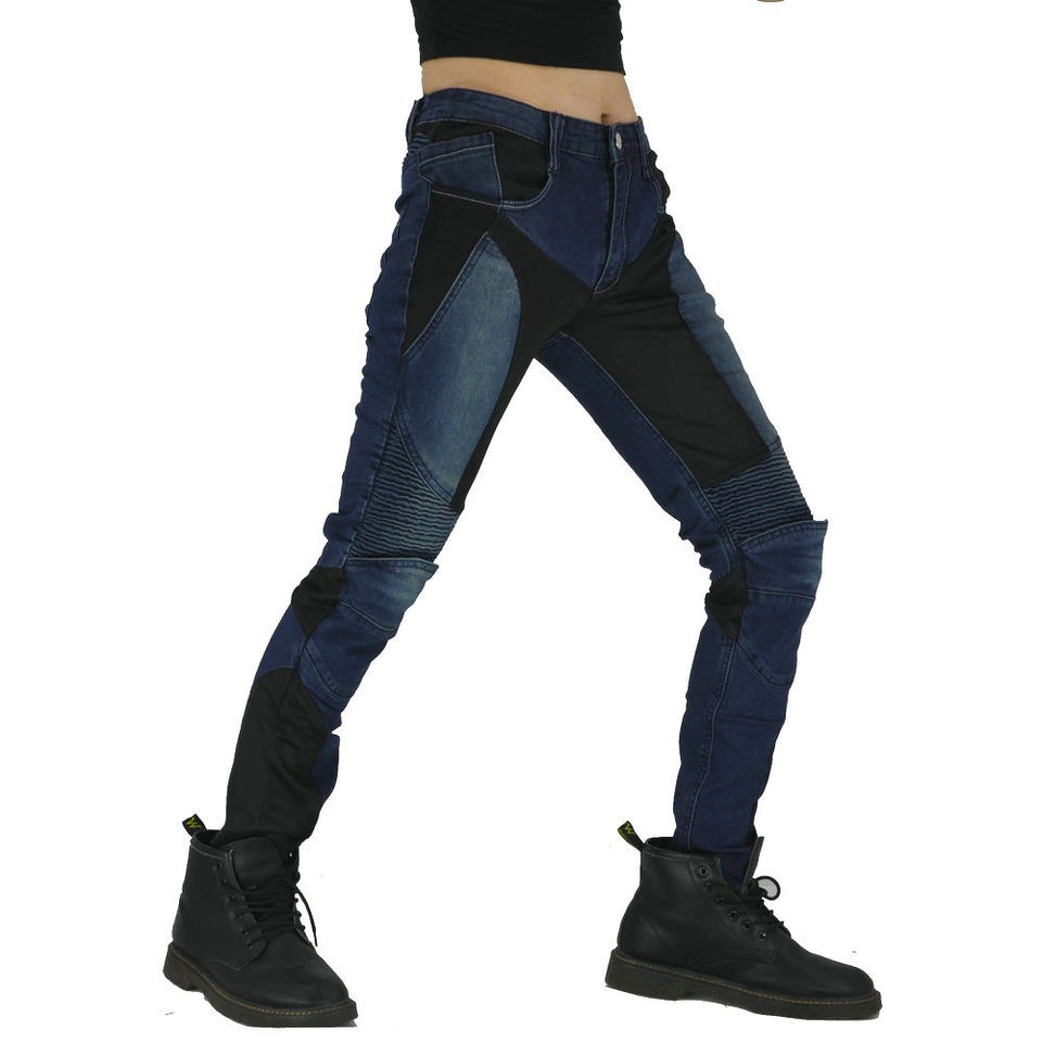 Blue Denim Biker Pants with Black Panels Removable Armor Breathable & Quick Dry for Protective Riding