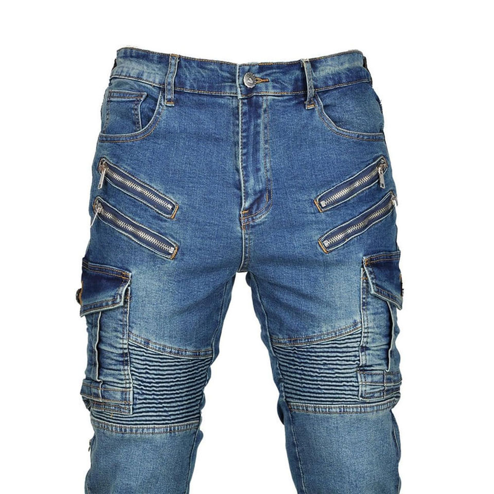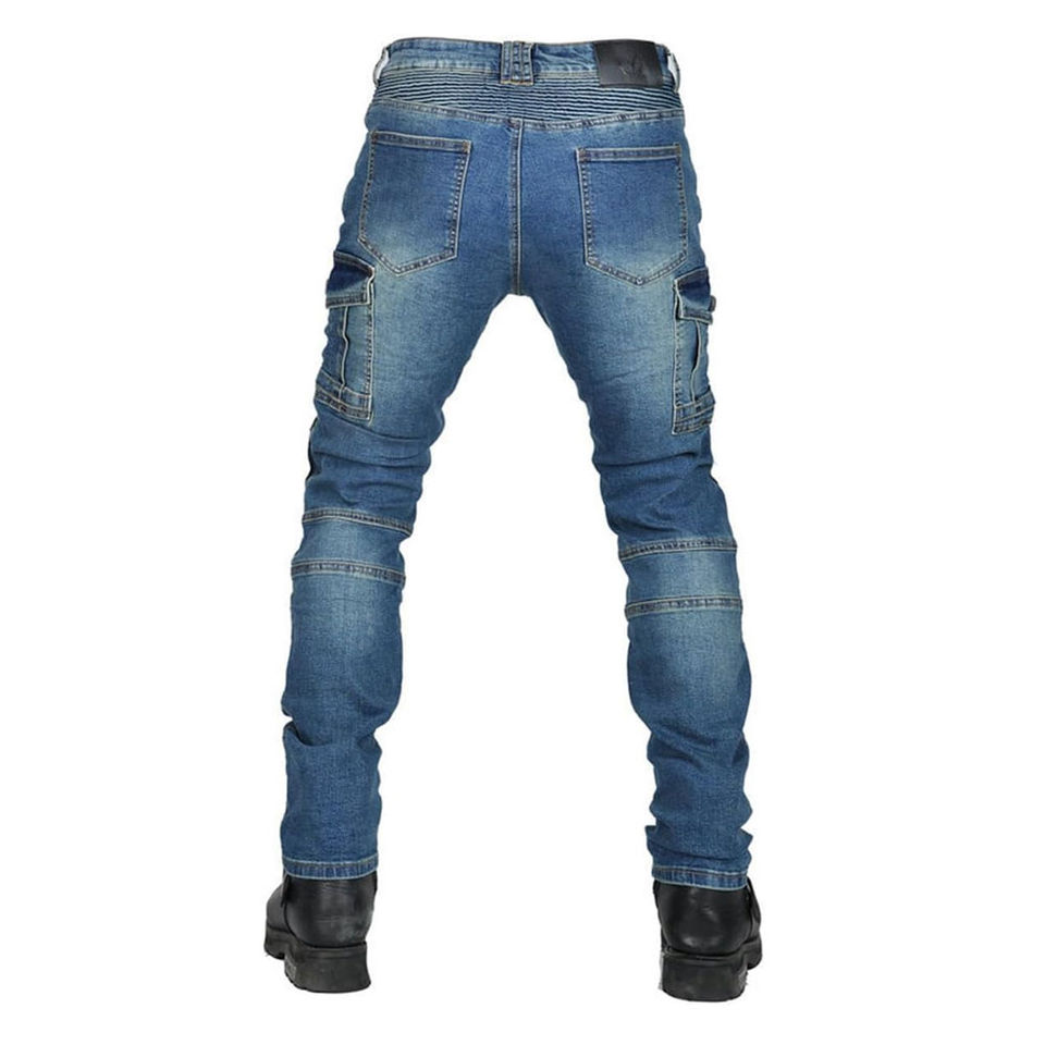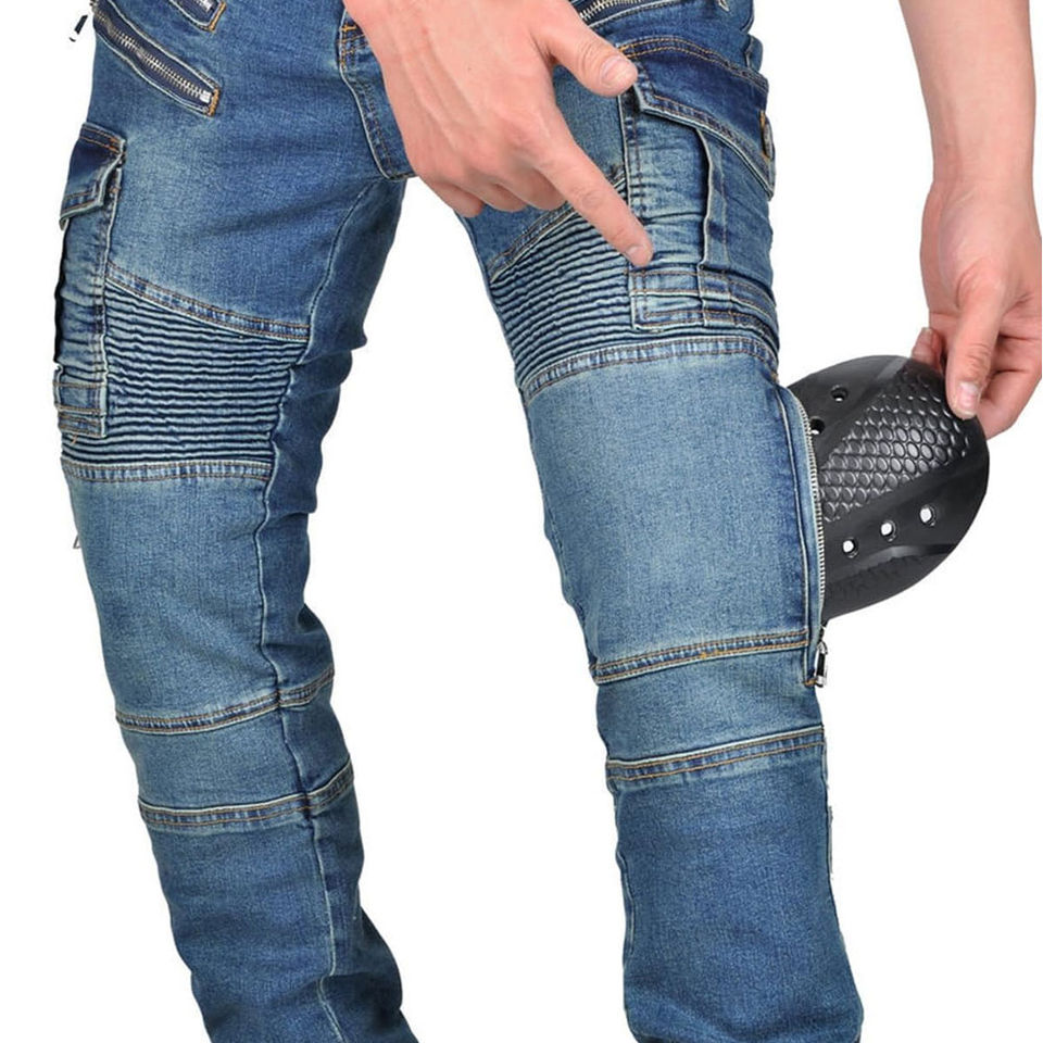 D-Ride Moto Blue Denim Motorcycle Rider Biker Jeans with Removable Knee Hip Armor Breathable & Quick Dry for Men's All Seasons