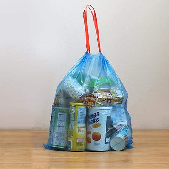 Blue Drawstring HDPE Disposable 10 Gallon Kitchen Garbage Bags Heat Seal 2 Rolls/110 Bags