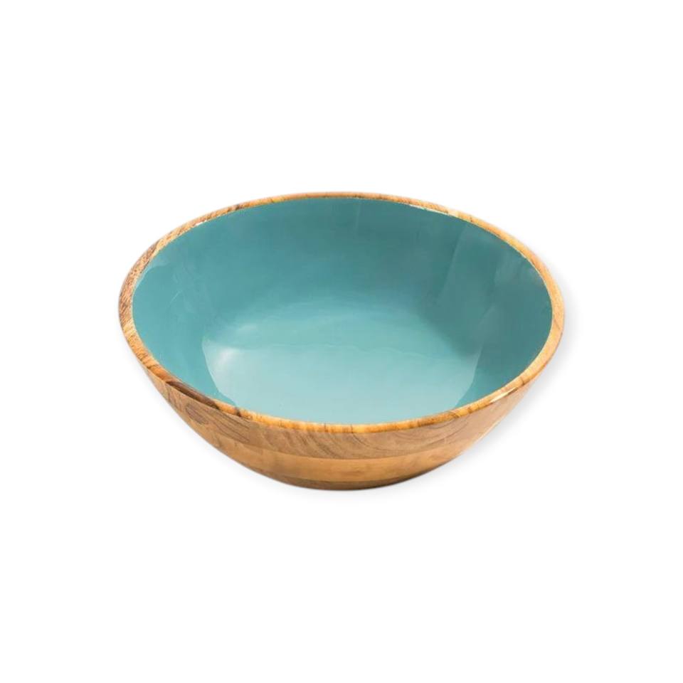 Blue Enamel Wooden Bowl with Wavy Pattern Design for Modern Kitchen Dining and Elegant Table Serve Wave Look