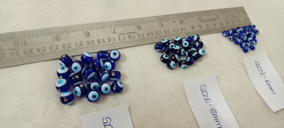 Blue Eye or Lucky Eye Glass Beads in Assorted Sizes From 6 mm Onwards Suitable for Use in Making Door Hanging and for Jewelry