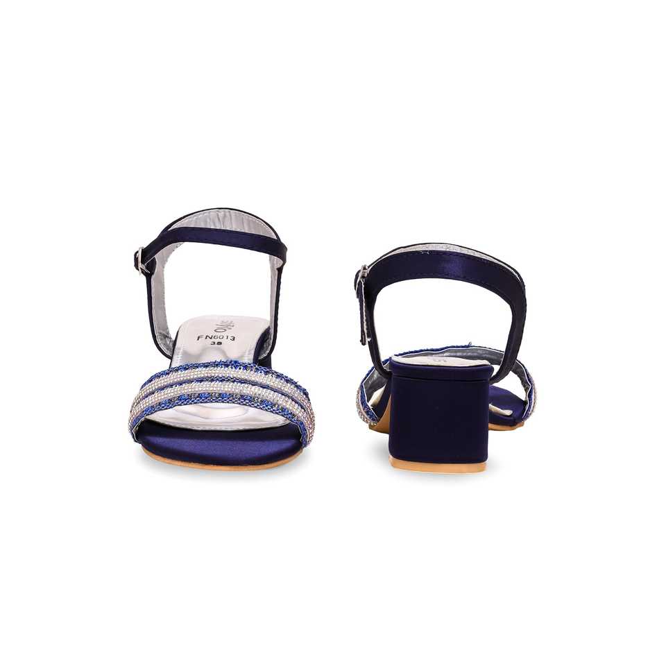 Blue FN6013 Heeled Sandals for Women Fancy Ankle Strap Platform Sandals with Square Toe Upper Material Fur