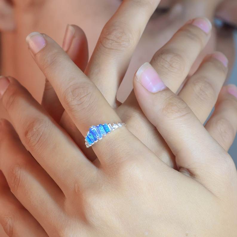 Blue Fire Ethiopian Opal Ring For Women 925 Sterling Silver Natural Gemstone Jewelry Elegant Fire Opal Ring Gift For Her