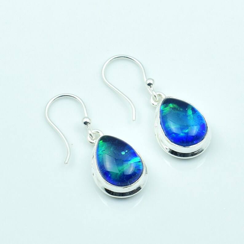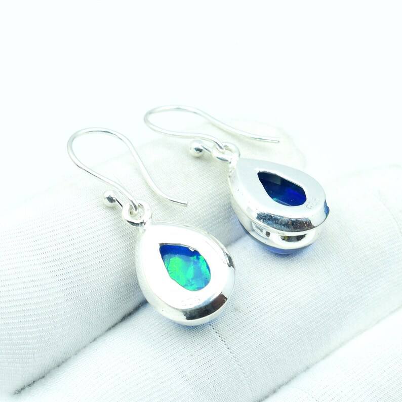 Blue Fire Opal Earrings Boho 925 Sterling Silver Handmade Teardrop Gemstone Jewelry Gift For Women Men