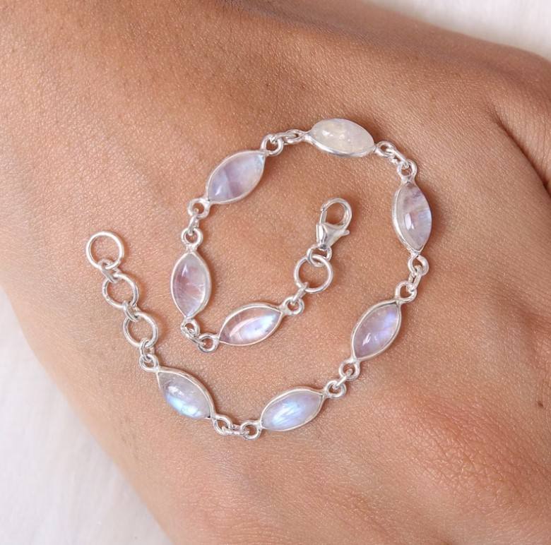 Product Name:Natural Rainbow Moonstone Gemstone silver bracelet