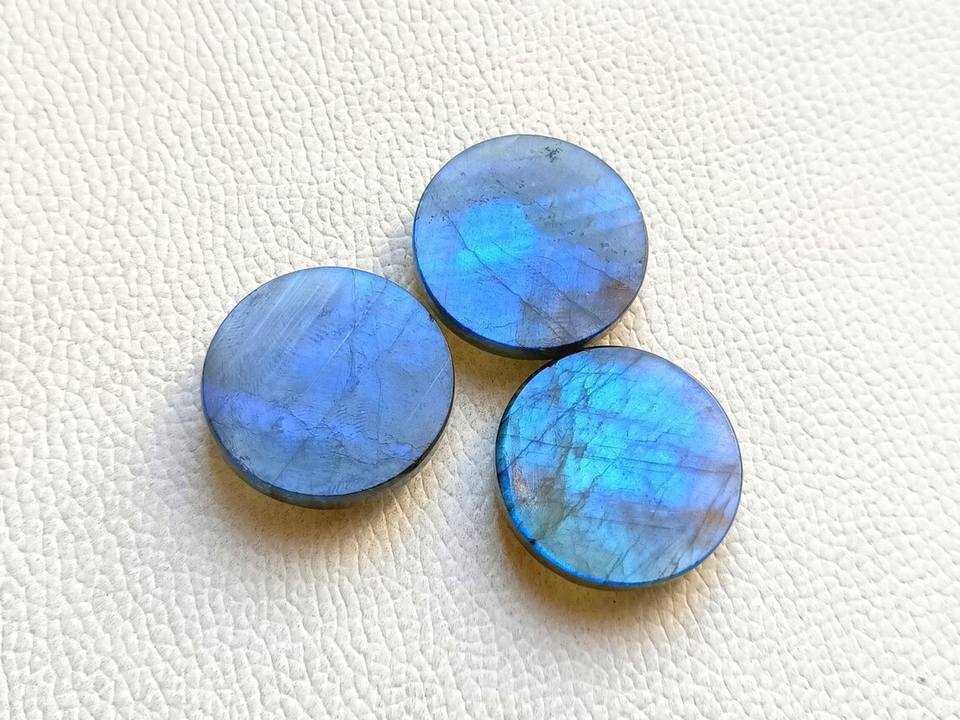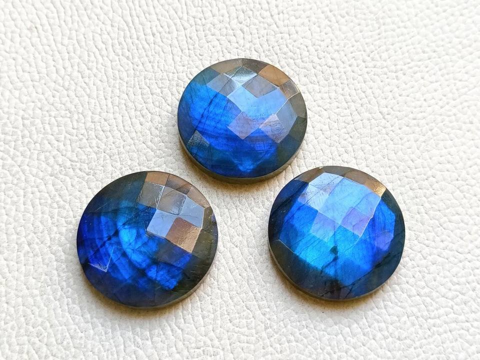 Blue Flash Labradorite Round Checker Cut Cabochon 30mm Loose Gemstone Set Faceted Top Flat Back Stone For Jewelry Making