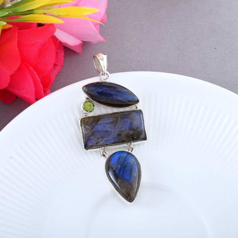 Blue Flashy Labradorite Necklace Solid 925 Sterling Silver Labradorite Pendant Handmade Silver Jewelry Natural Gemstone Pendant