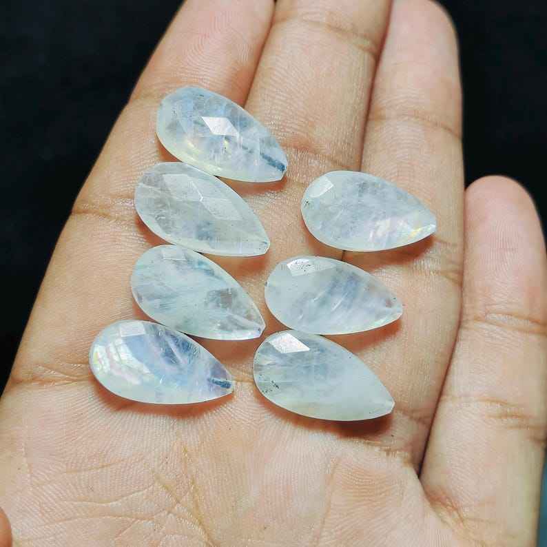 Blue Flashy Rainbow Moonstone Briolette Lot 7 Pieces 10x16 MM Pear Shape Loose Natural Gemstone For Jewelry Making Gift For Her
