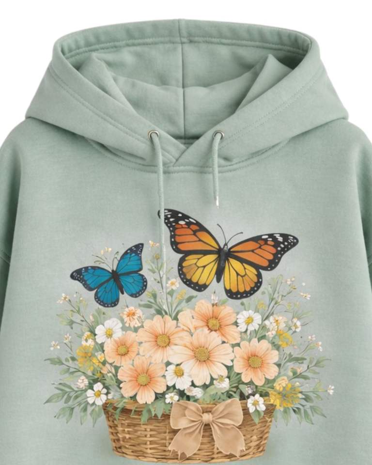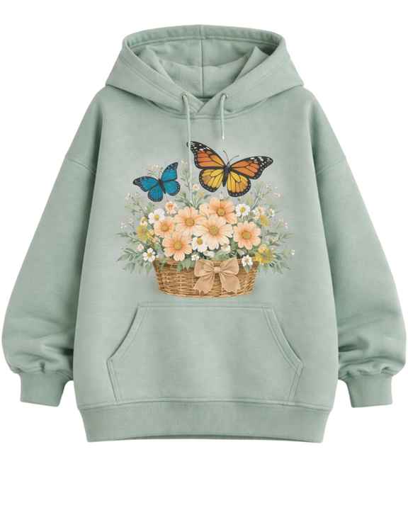Blue Floral Butterfly Printed Hoodie Jogger Pant Set Women Fleece Pullover Sweatshirt With Matching Trouser Casual Winter Outfit