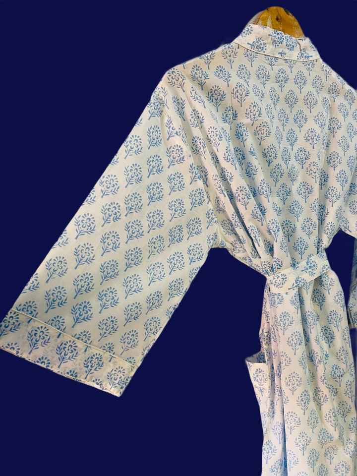 Blue Floral Cotton Kimono Robe 100% Cotton With Stripe Belt Spa Hotel Resort Bulk Supplier USA UK Australia