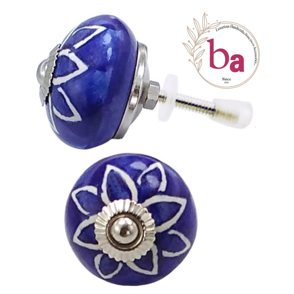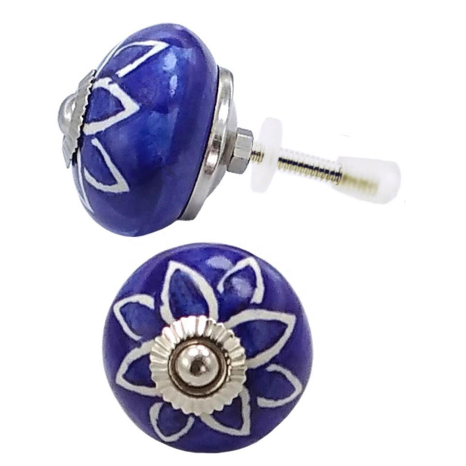 Blue Floral Round Ceramic Knobs for Kitchen Bedroom Living Room Outdoor Warehouse Villa Dresser Door Drawer Cabinet Handle Pulls