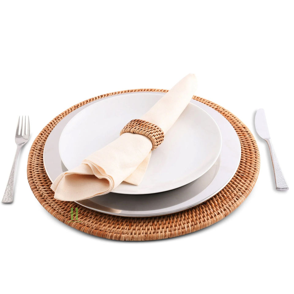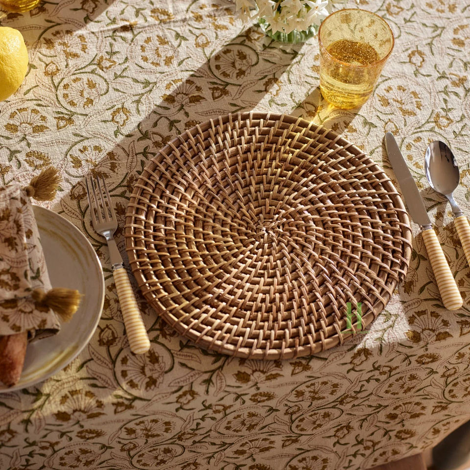 Blue Flower Scalloped Rattan Placemat and Charger Plates From Vietnam Factory for Dining Table Set of Mats & Pads