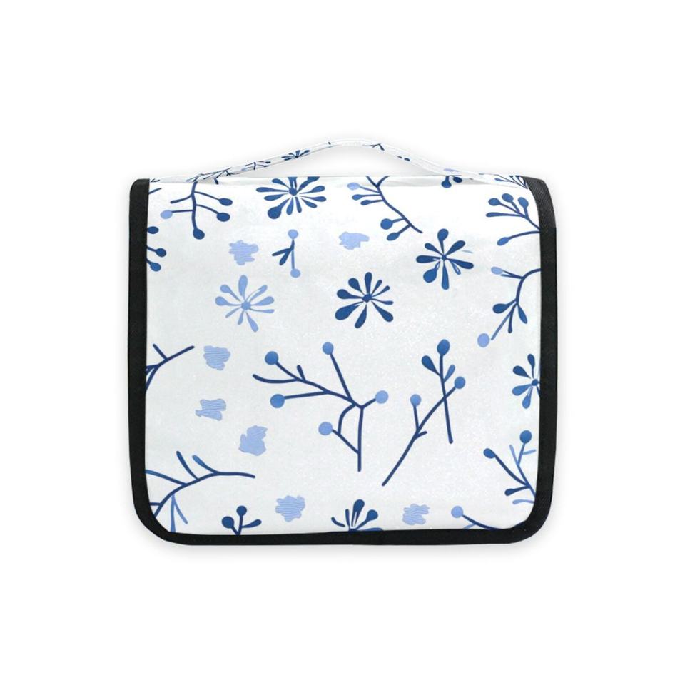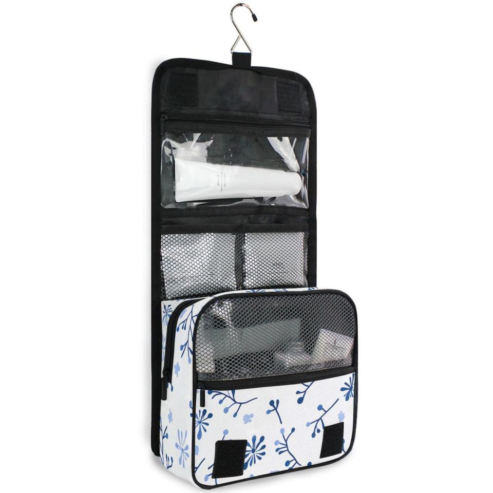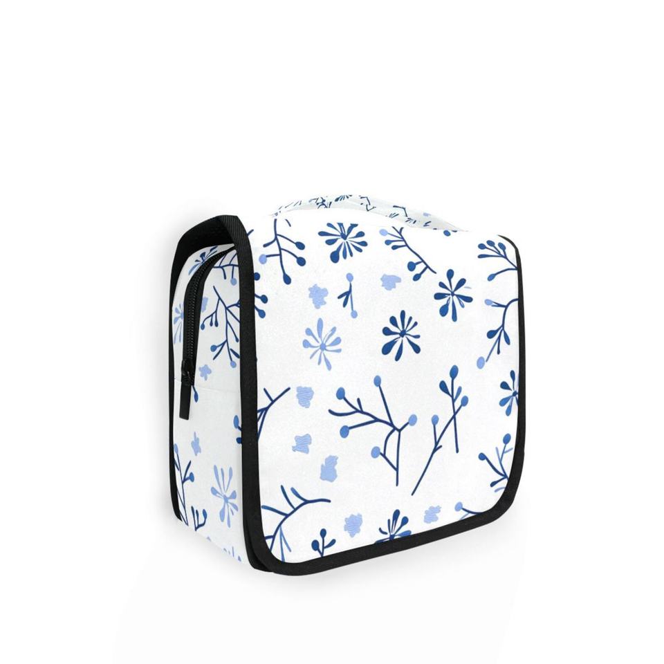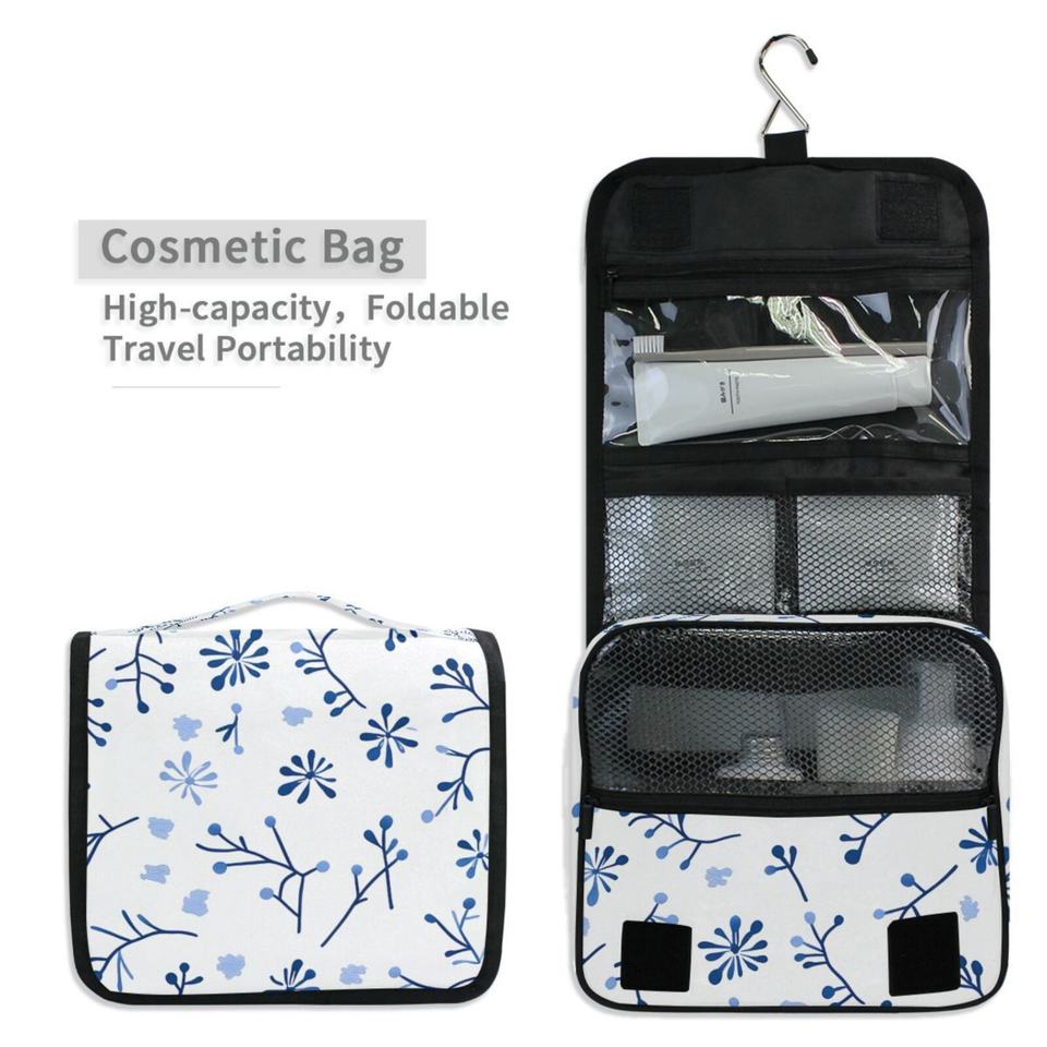 Blue Flowers Patterns Portable Storage Bag Toiletries Organizer Women Zipper Waterproof Hanging Travel Wash Pouch Bag