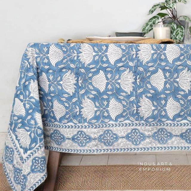 Blue Gadh Handmade Cotton Table Cloth Beautiful Hand Block Printed Cotton Table Cover Indian Handblock Prints
